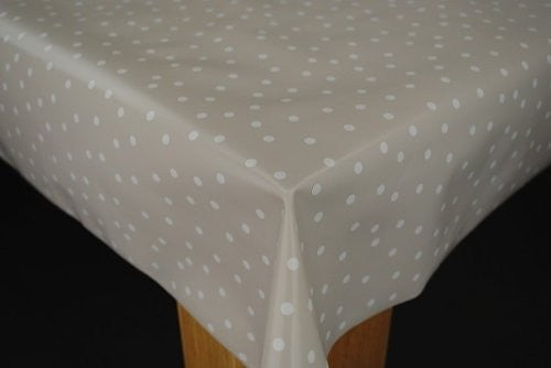 Wipe Clean Tablecloth PVC Random 5mm White Spot on Taupe 200cm x 137cm