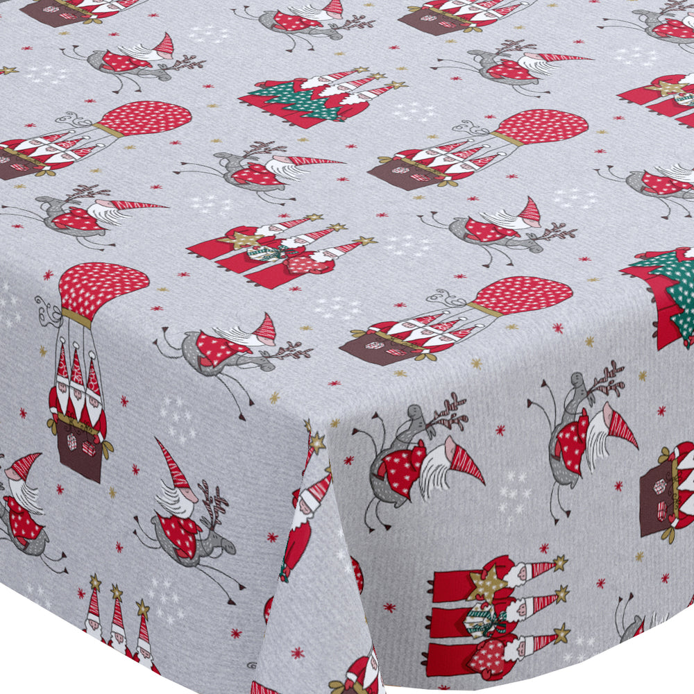 Santa Lapland Silver Grey Christmas PVC Wipe Clean Tablecloth 250cm x 140cm by Karina Home