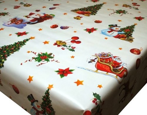 Christmas Vinyl Tablecloth Santa Sleigh on white by Karina Home 300 x 137cm