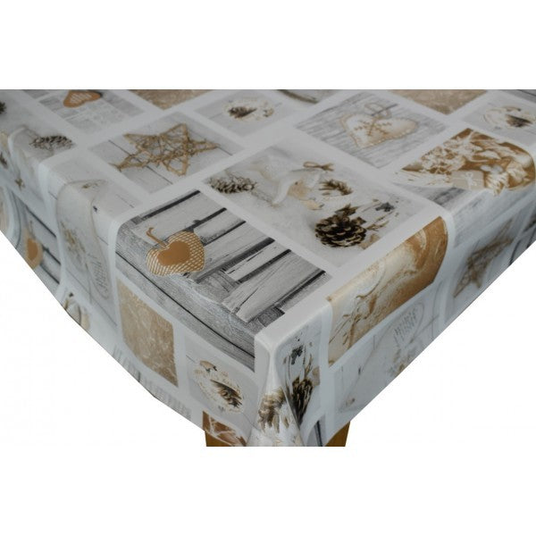 Gold Christmas Wood Effect VINYL OILCLOTH TABLECLOTH BY KARINA HOME 200CM X 140CM