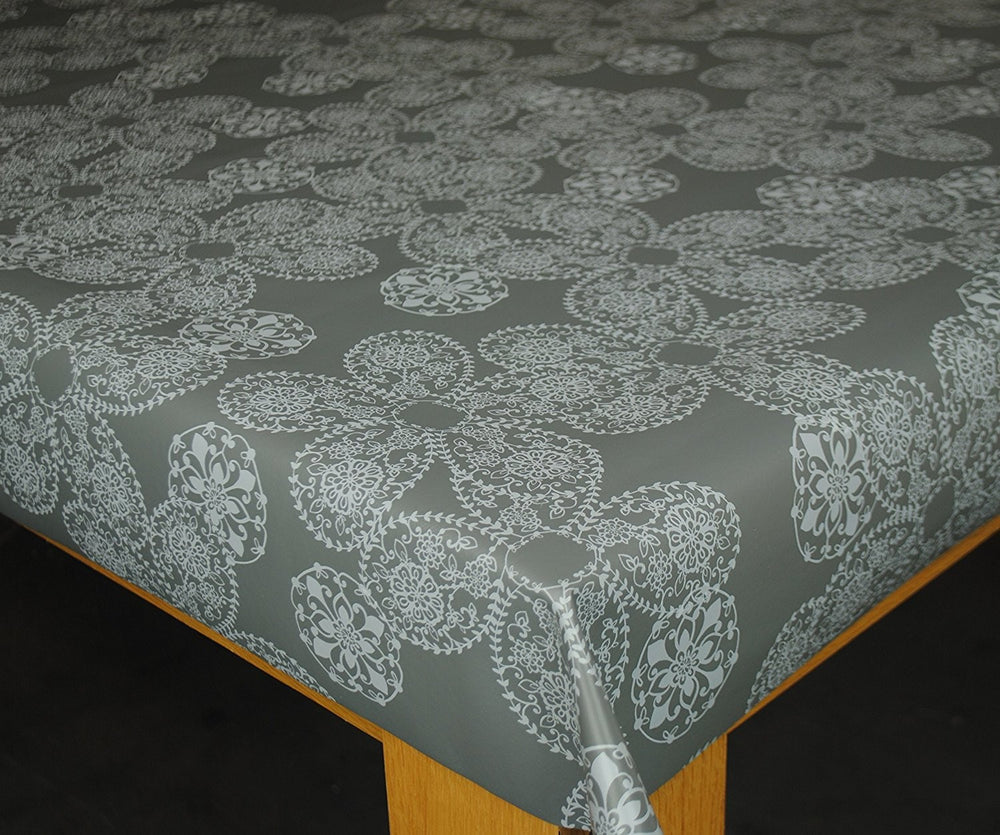 Gunmetal Lace Effect Wipe Clean Tablecloth by Karina Home 200 x 140cm