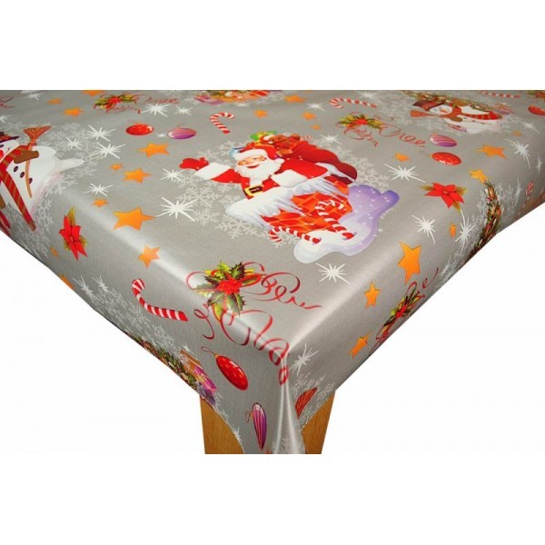 Happy Santa Silver VINYL OILCLOTH TABLECLOTH BY KARINA HOME 200CM X 140CM