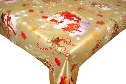 Jolly Santa Gold Vinyl Christmas Xmas Tablecloth 300 x 140 cm
