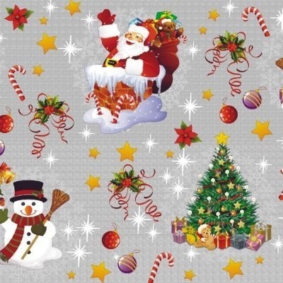 Jolly Santa Silver Vinyl Christmas Wipe Clean Tablecloth 200cm x 140cm
