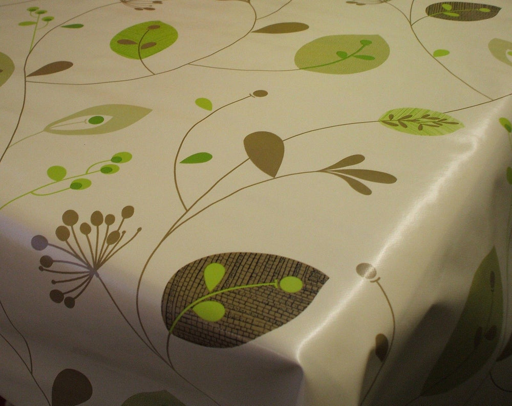 Leaves and Stems Natural PVC WIPE CLEAN TABLECLOTH BY KARINA HOME 200CM X 140CM