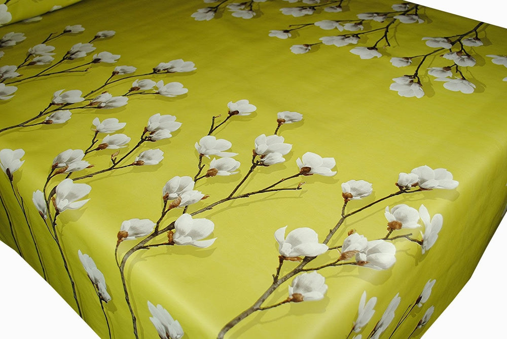 Magnolia Border Green PVC Wipe Clean Tablecloth by Karina Home 200 x 137cm
