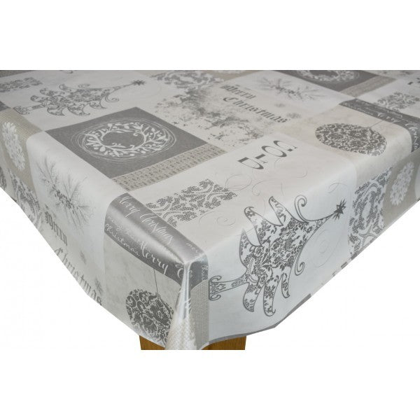 Merry Christmas Silver VINYL OILCLOTH TABLECLOTH BY KARINA HOME 200CM X 140CM