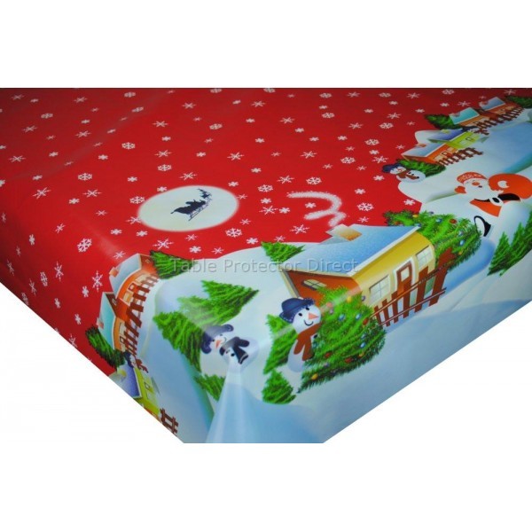 Red snowflake Christmas Border VINYL OILCLOTH TABLECLOTH BY KARINA HOME 200CM X 140CM