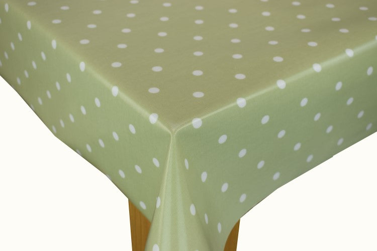 Sage Green Polka Dot Wipe Clean Cotton Oilcloth Tablecloth 200cm x 130cm