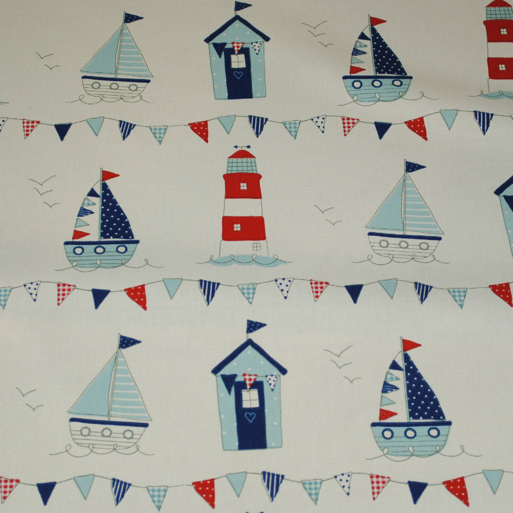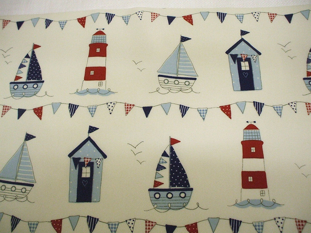 Sail Boats and Beach Huts BLUE Wipe Clean Cotton Oilcloth Tablecloth 200cm x 132cm
