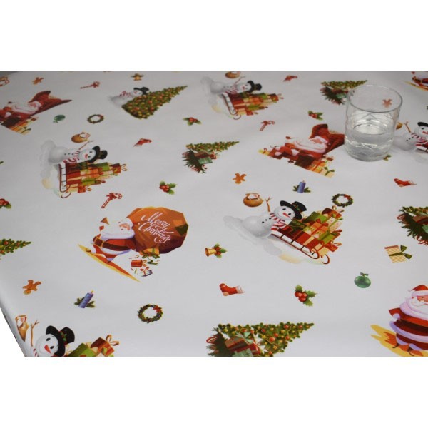 Santa Snowman White VINYL OILCLOTH TABLECLOTH BY KARINA HOME 200CM X 140CM