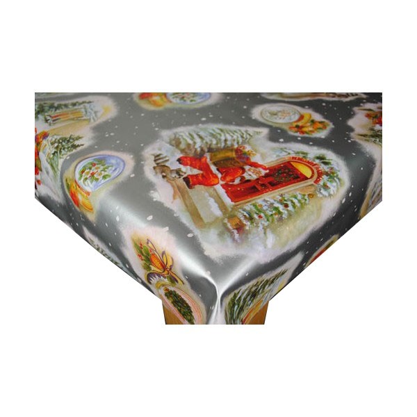 Santas Knocking SILVER Christmas VINYL OILCLOTH TABLECLOTH BY KARINA HOME 200CM X 140CM
