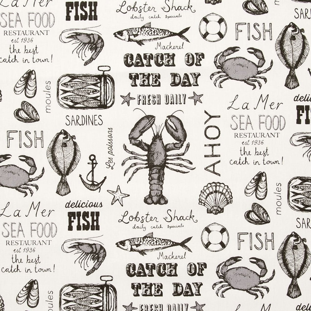 Seafood Lobster Crab Black Wipe Clean Cotton Oilcloth Tablecloth 132cm x 200cm