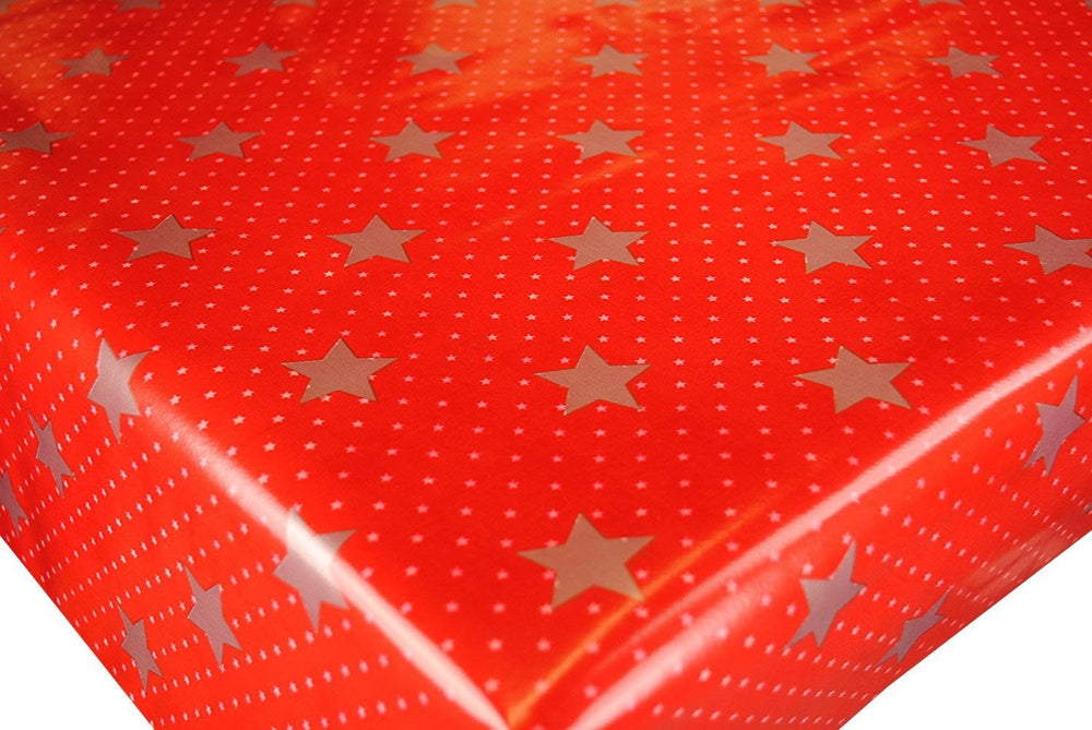 Silver Stars on Red Vinyl Christmas Wipe Clean Tablecloth 300cm x 140cm