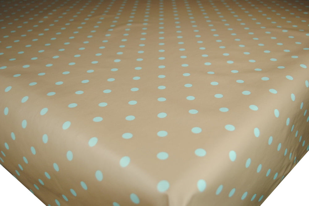 Taupe and Duckegg Polka Dot PVC WIPE CLEAN TABLECLOTH BY KARINA HOME 200CM X 140CM