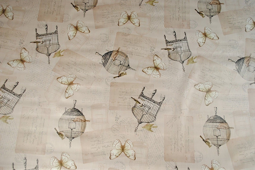 Wipe Clean Tablecloth Oilcloth Vinyl Bird Cage & Butterfly TAUPE by Karina Home 140cm x 200cm